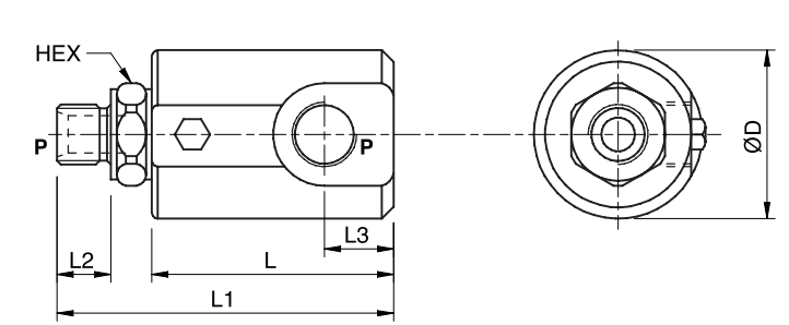 | Codice (Code) | Sigla (Type) | P (Gas) | L (mm) | L1 (mm) | L2 (mm) | L3 (mm) | HEX (mm) | ØD (mm) | Peso (Weight Kg) |