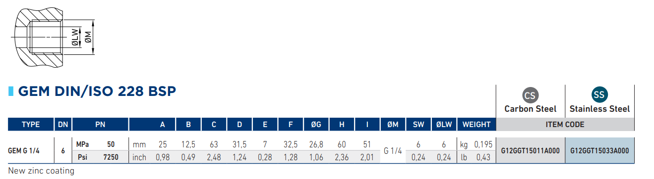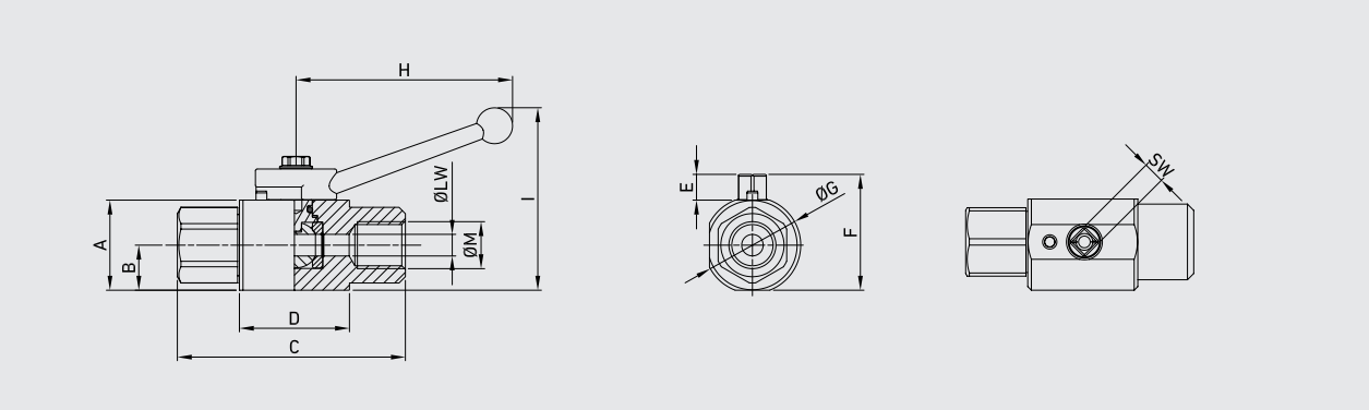 Gemels, GEM Hydraulic Ball Valve, 2 Ways, 1/4" BSP DN6, Stainless Steel